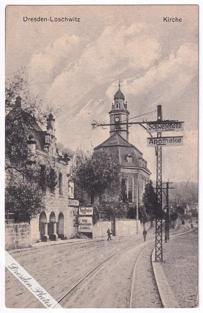 Talstation der Schwebebahn und Kirche Dresden-Loschwitz