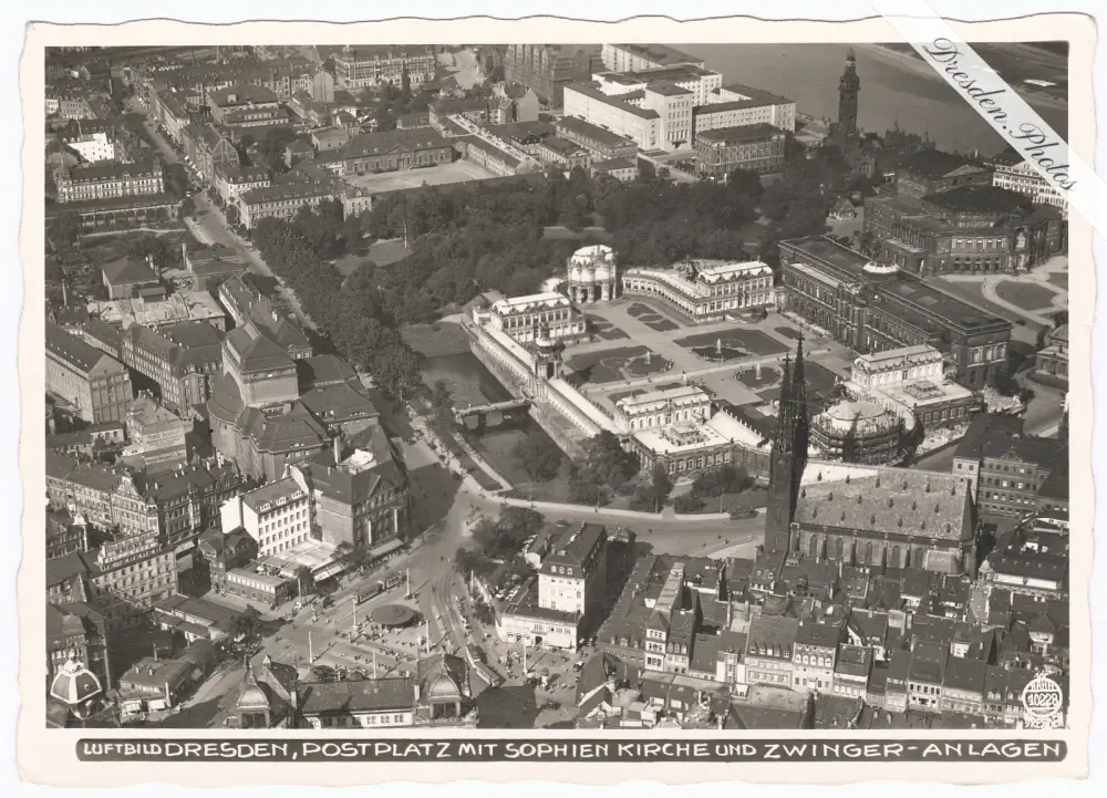 Luftbild mit Postplatz, Sophienkirche und Zwinger