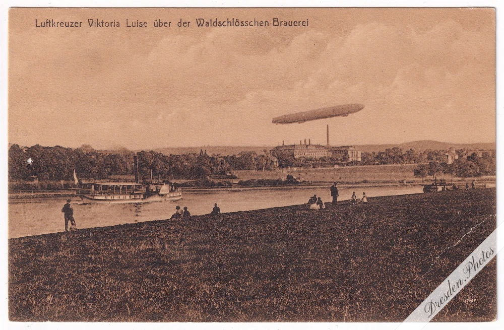 Luftkreuzer Viktoria Luise über der Waldschlösschen Brauerei