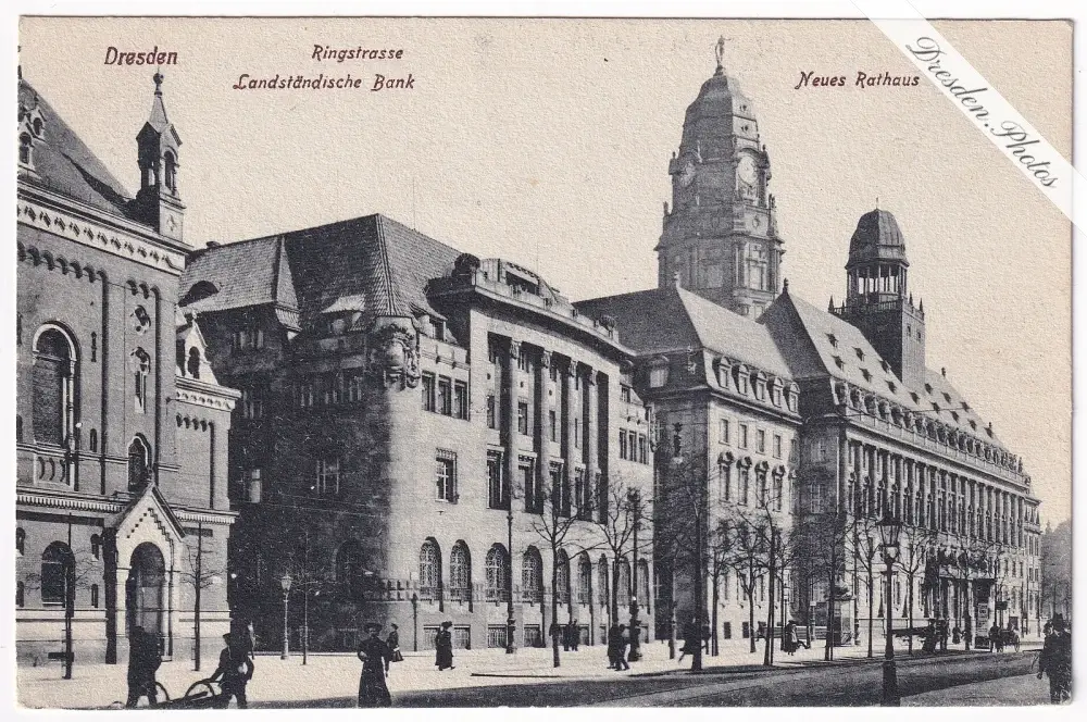Landstädtische Bank an der Ringstrasse, dahinter das neue Rathaus