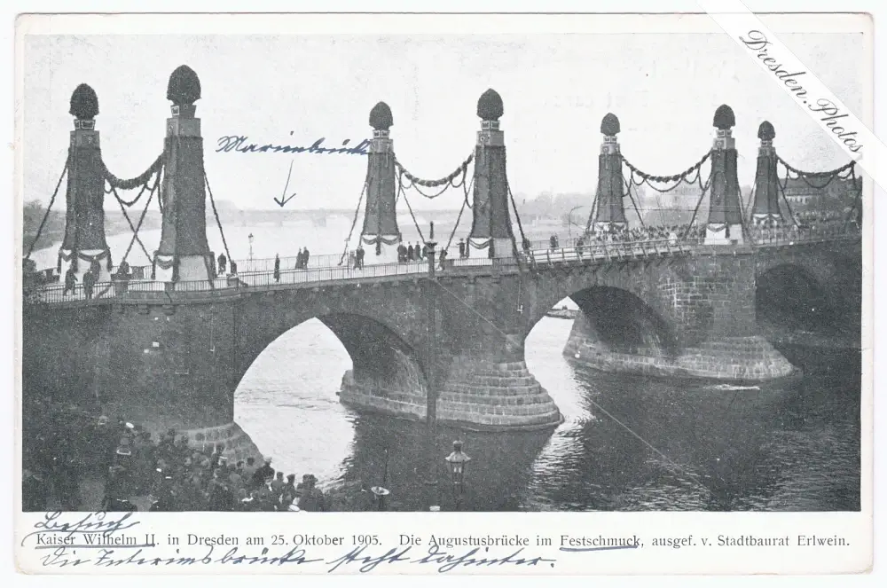 Kaiser Wilhelm II. in Dresden am 25. Oktober 1905 - Die Augustusbrücke im Festschmuck von Erlwein
