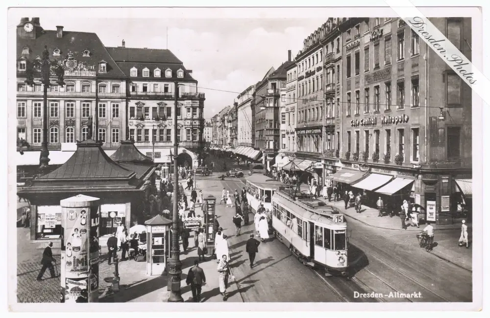 Altmarkt mit Straßenbahn, im Hintergrund die Löwen-Apotheke