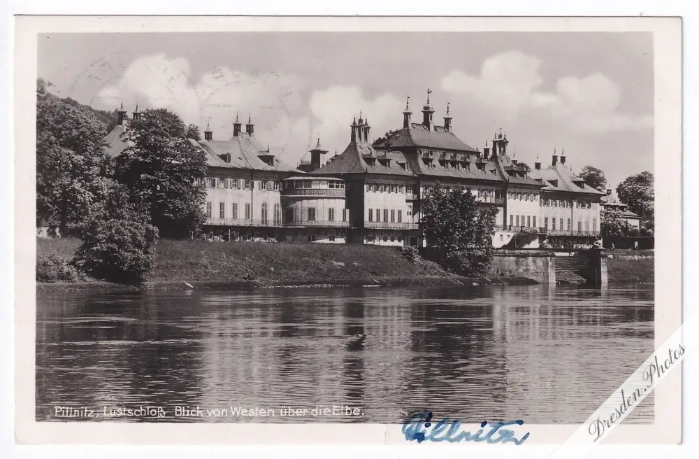 Pillnitz, Lustschloß, Blick von Westen über die Elbe