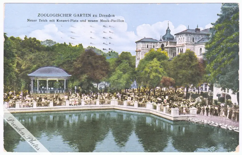 Neuer Teich mit Konzert-Platz und neuem Musik-Pavillon im Zoologischen Garten