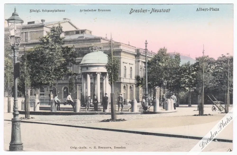 Artesischer Brunnen am Albertplatz vor dem Königlichen Schauspielhaus