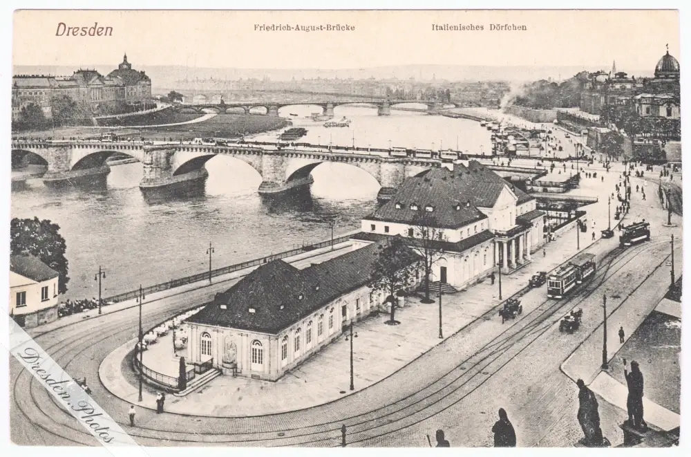 Italienisches Dörfchen, im Hintergrund die neue Friedrich-August-Brücke