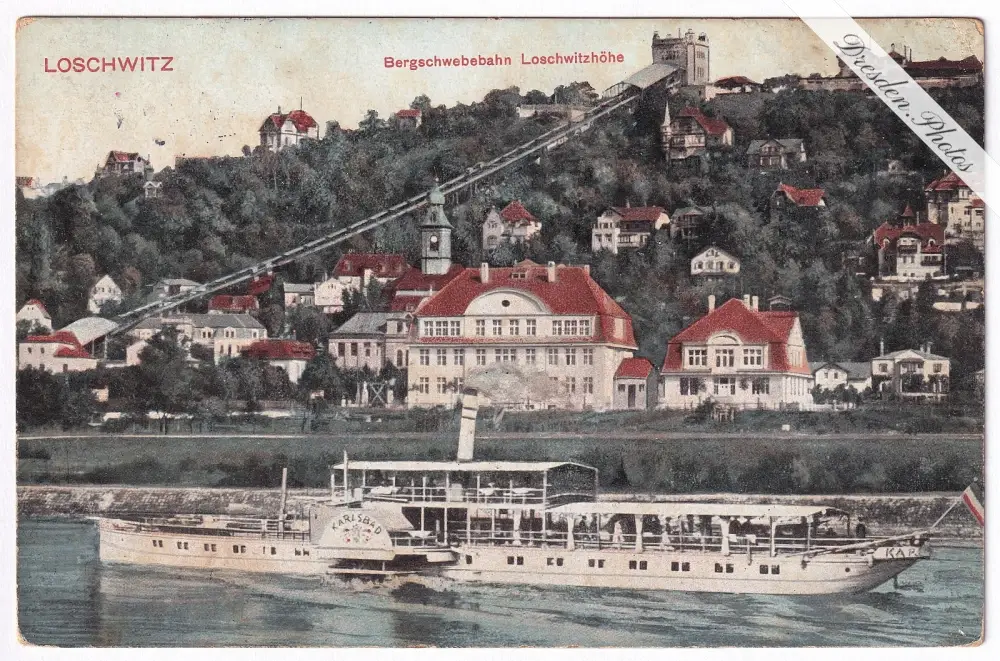 Bergschwebebahn, Loschwitzhöhe und Dampfer „Karlsbad“