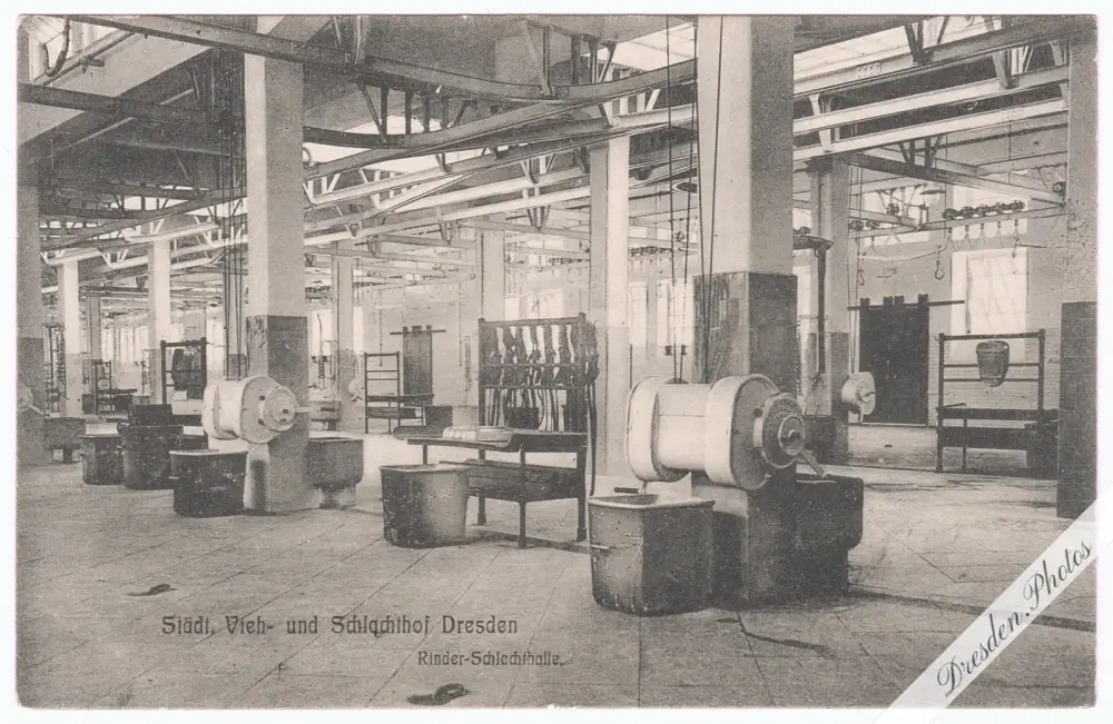 Städtischer Vieh- und Schlachthof – Blick in die Rinder-Schlachthalle