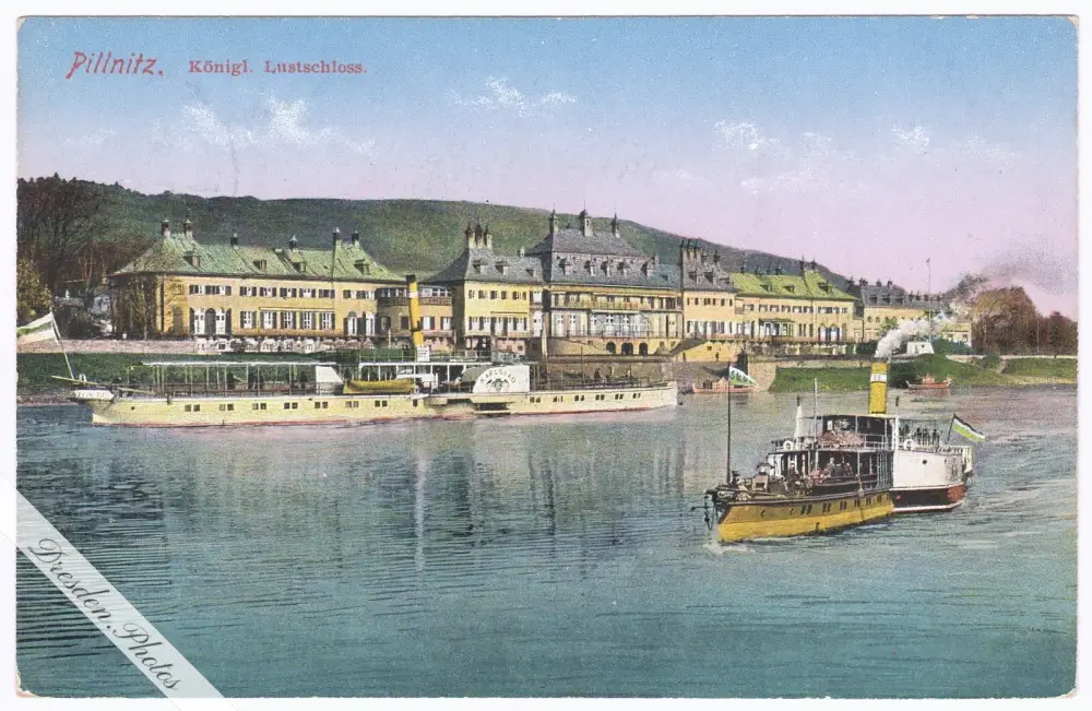 Königliches Lustschloss in Pillnitz, davor der Dampfer Karlsbad