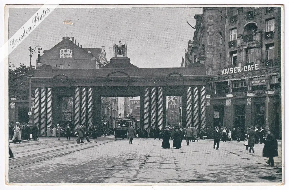 Dresden im Festschmuck - Die große Ehrenpforte am Hauptbahnhofe, Eingang Pragerstraße am 28. und 29. August 1912