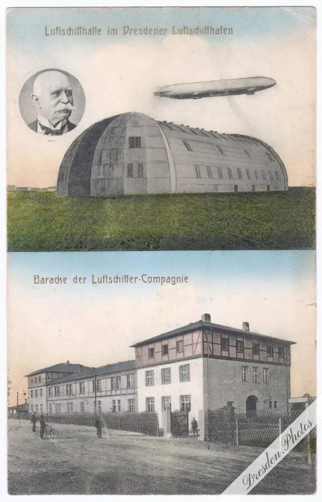 Luftschiffhalle und Baracke der Luftschiffer-Compagnie