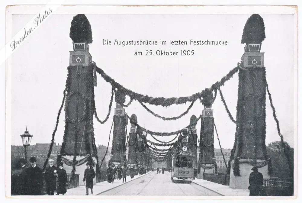Die Augustusbrücke im letzten Festschmucke am 25. Oktober 1905