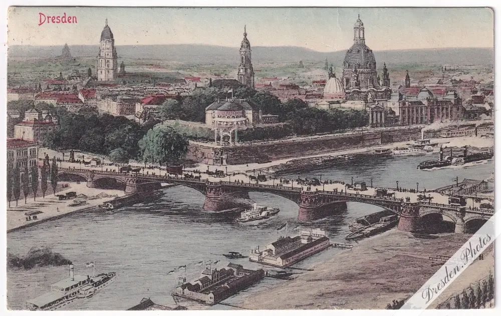 Carolabrücke, Rathaus, Belvedere, Kreuzkirche, Kunstakademie, Frauenkirche
